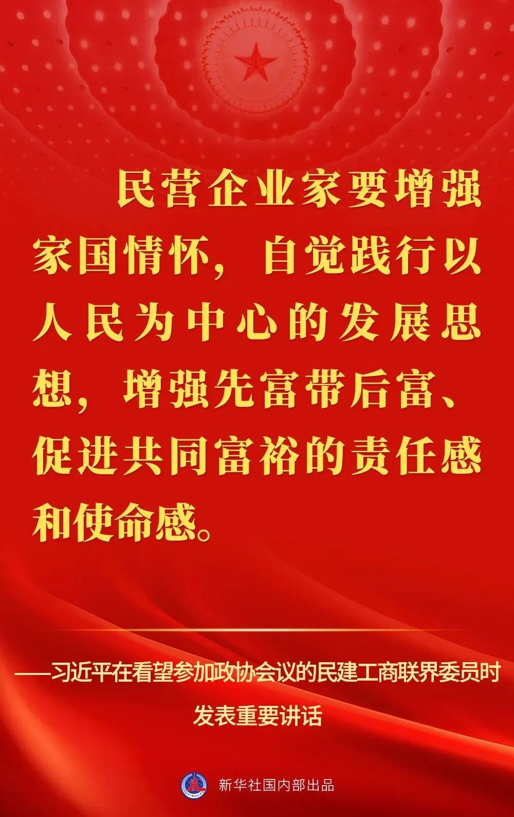 “党中央始终坚持‘两个毫不动摇’、‘三个没有变’,始终把民营企业和民营企业家当作自己人。”3月6日,习近平总书记在看望参加全国政协十四届一次会议的民建、工商联界委员并参加联组会时发表重要讲话,强调要引导民营企业和民营企业家正确理解党中央方针政策,增强信心、轻装上阵、大胆发展。