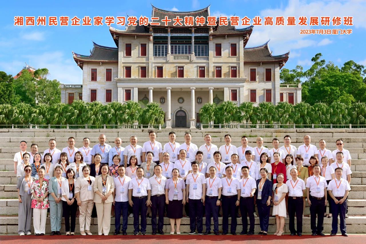 7月8日,湘西州在厦门大学举办民营企业家学习党的二十大精神暨民营企业高质量发展研修班顺利结业。优秀民营企业家代表、统战干部、工商联干部等63名学员顺利完成全部课程学习并经考核合格,获得了厦门大学颁发的结业证书。
