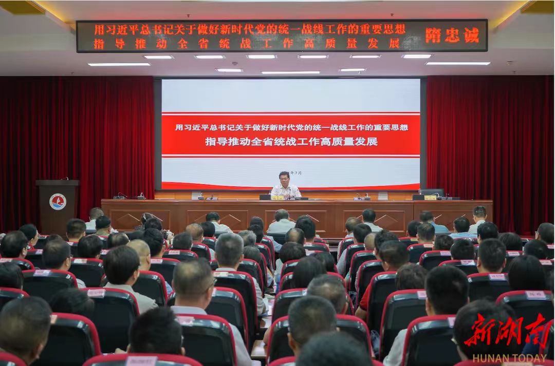 隋忠诚强调,要准确把握新时代爱国统一战线的历史方位,增强做好统战工作的责任感使命感,坚持正确处理一致性和多样性关系基本方针,把聚焦主责主业加强思想政治引领贯穿统战工作各领域全过程,着力完善大统战工作格局,着力加强党外代表人士和统战干部“两支队伍”建设,着力防范化解风险隐患,在守正创新中推动统一战线不断发展壮大。各级统战部长要在强政治、勤学习、重实干、会团结、善统筹、守纪律上作表率,坚守绝对忠诚、争当行家里手、敢于担当作为、凝聚人心力量、维护良好形象,在推动湖南统战工作提质增效中发挥更大作用。
